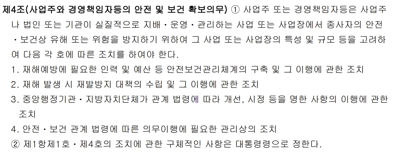 중대재해처벌법 제4조