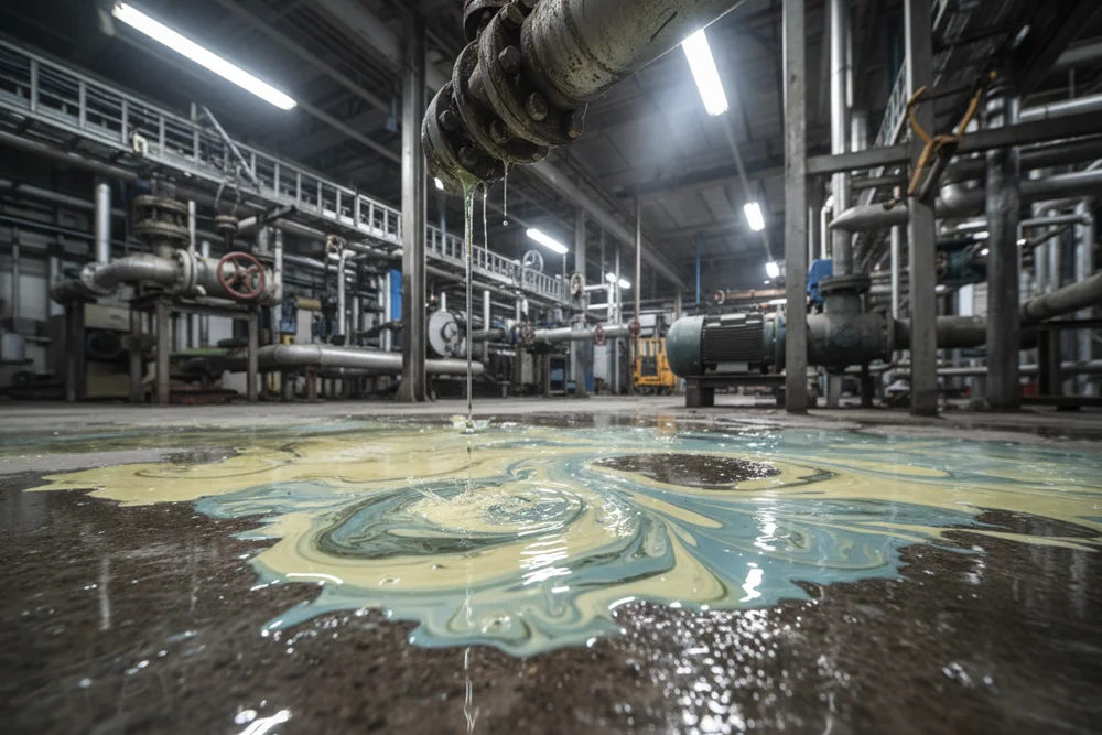 ▶ 사례② 화학 공장 : 냉각수 + 약품 혼입 → 바닥 전체 오염