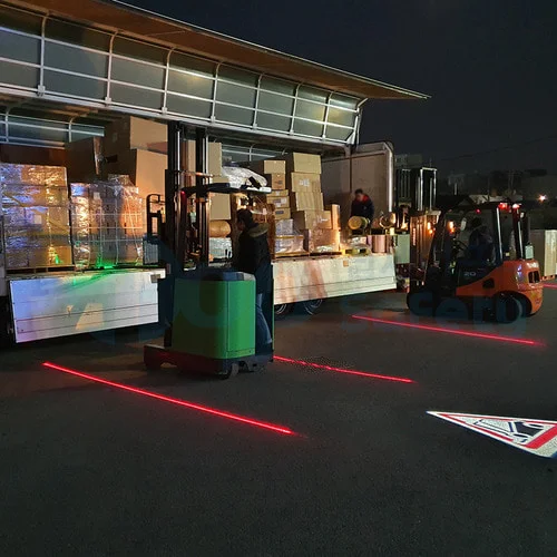 지게차 라이트 도입. 장비 주행 방향에 선제적인 빛의 경로를 형성하고,