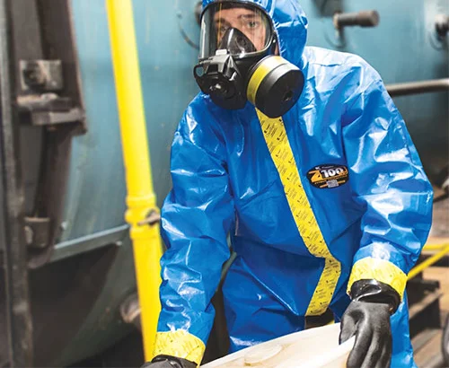 보호복과 장갑, 장화 사이의 틈새로 화학 물질이 유입.